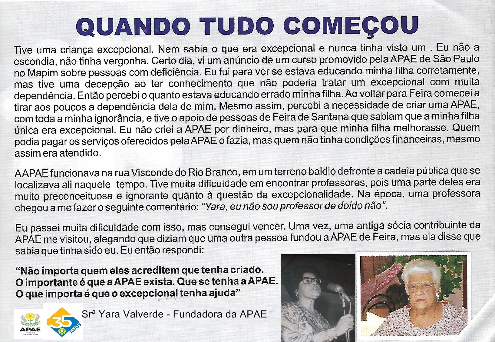 Juntamente com outros colegas que trabalhavam comigo nessas instituições, e movidos pelo mesmo sonho e desejo, tomamos a iniciativa de reativar a APAE na nossa cidade.